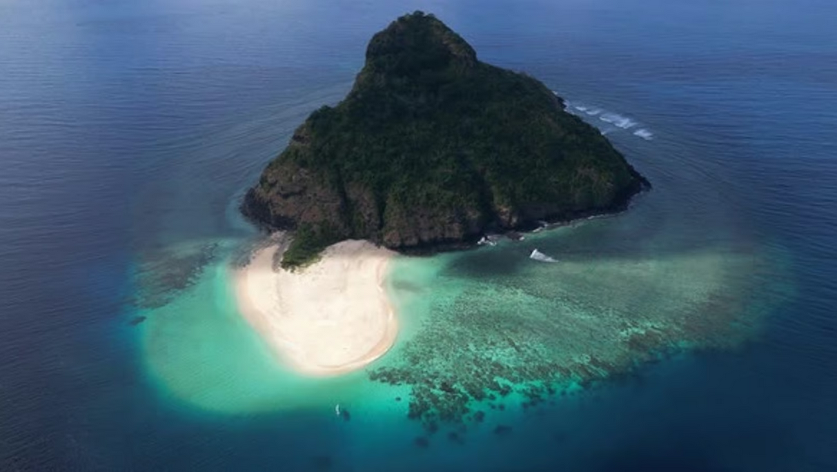 Évasion paradisiaque sur un îlot de sable blanc au milieu du lagon turquoise.